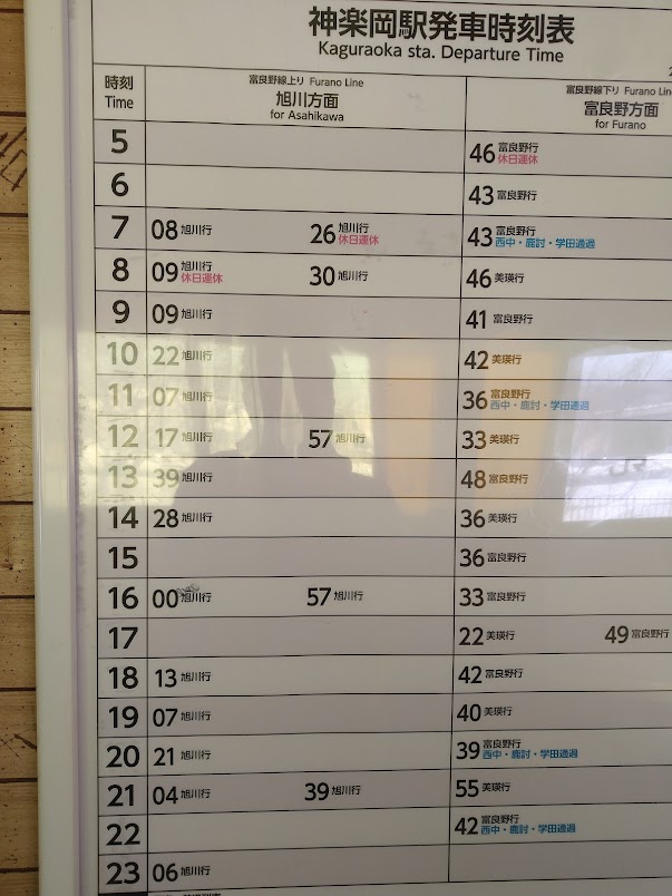 ④-3北森カレッジ→旭川向きバス時刻表