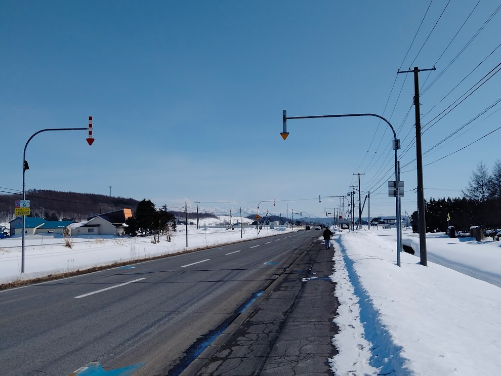 ・やはり国道のためか、歩道の雪かきはしっかりされています。