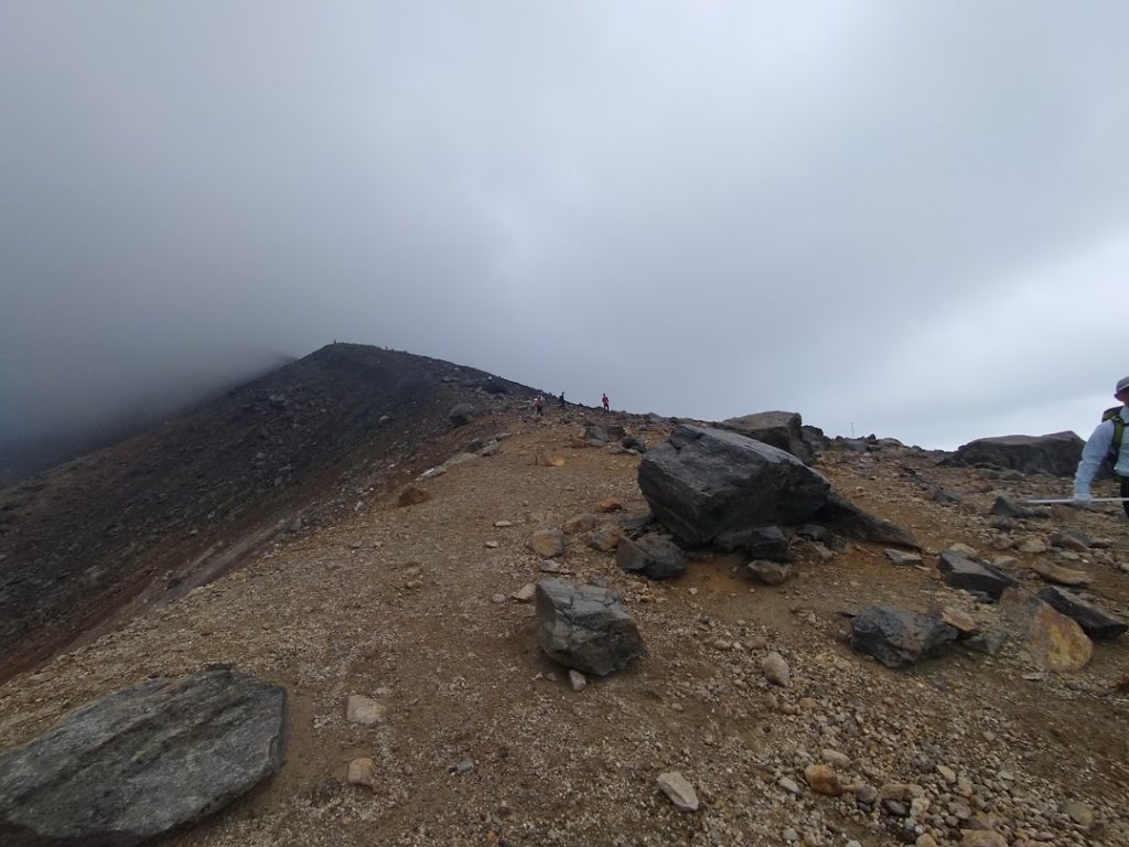 下山途中でさらにガスが下りてきており、下山後に昼食を食べ、姿見観光をした時には、5合目の噴気孔辺りもガスってました。
