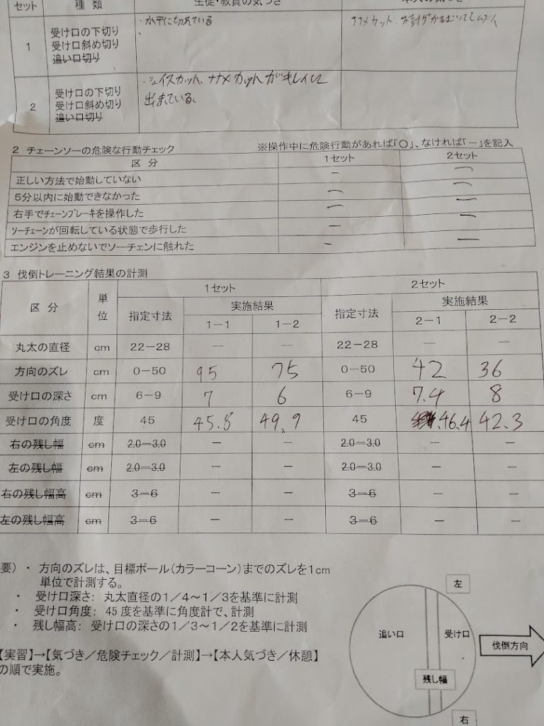 久しぶりのチェンソーのためか、水平をうまく作れず、刃先が下がる(奥側が下がる)状態となっていました。