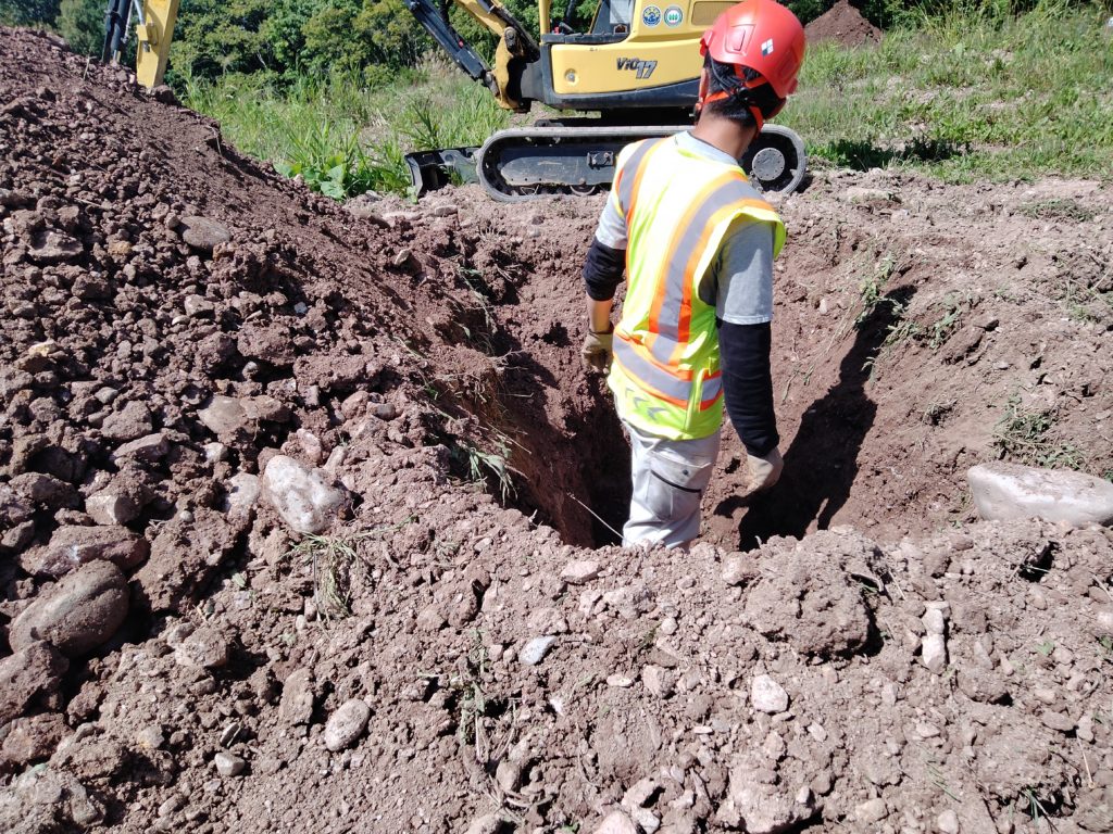 →②山を崩して穴を埋める。バゲットで地面を固める。
