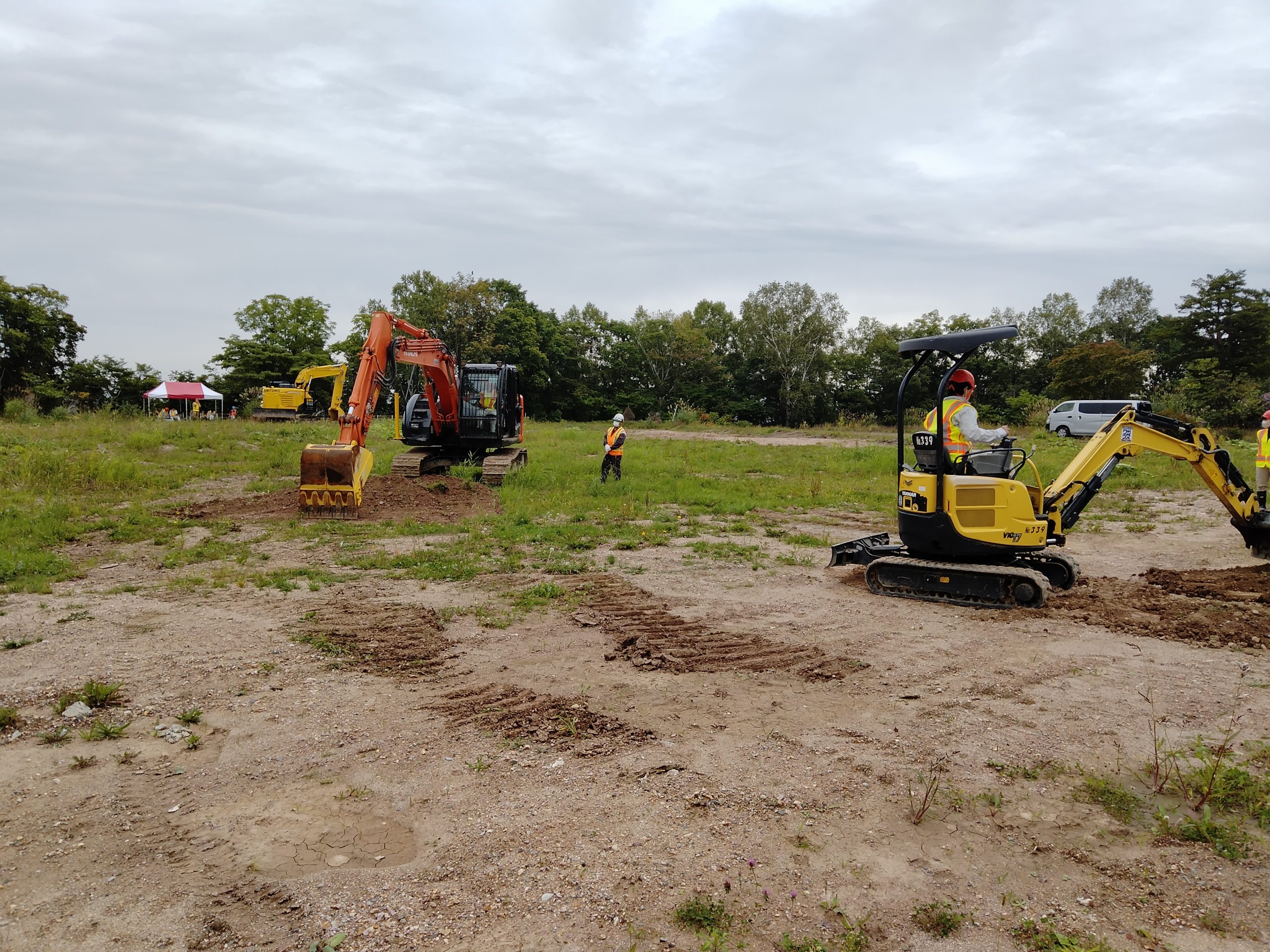二日間、北海道機械化協会の指導の下、バックホウの乗車実習でした。