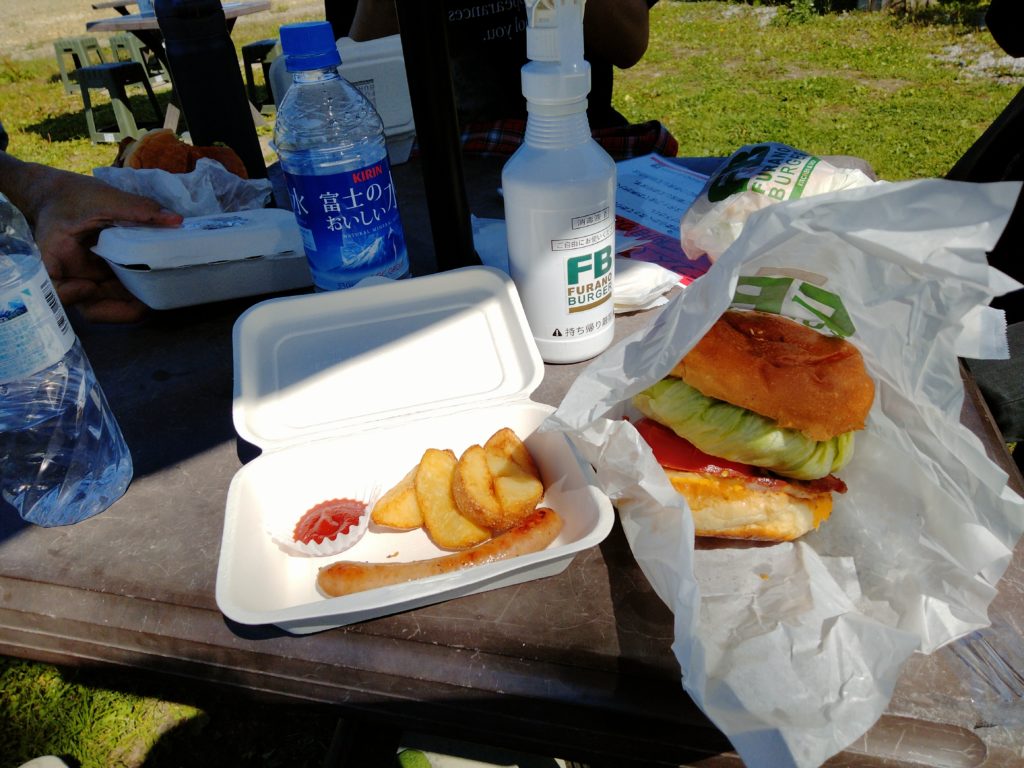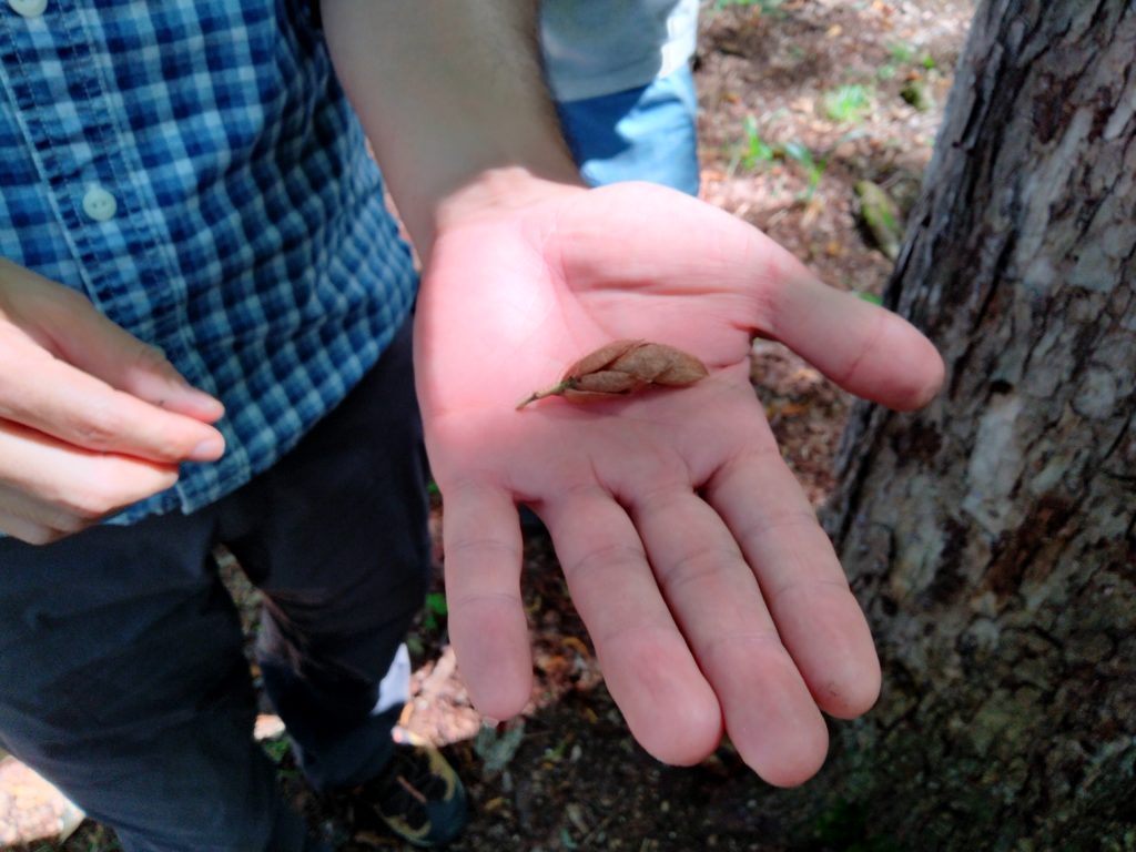 昼食の富良野バーガーできあがり待ちの間に、隣の烏丸公園で樹種同定が(