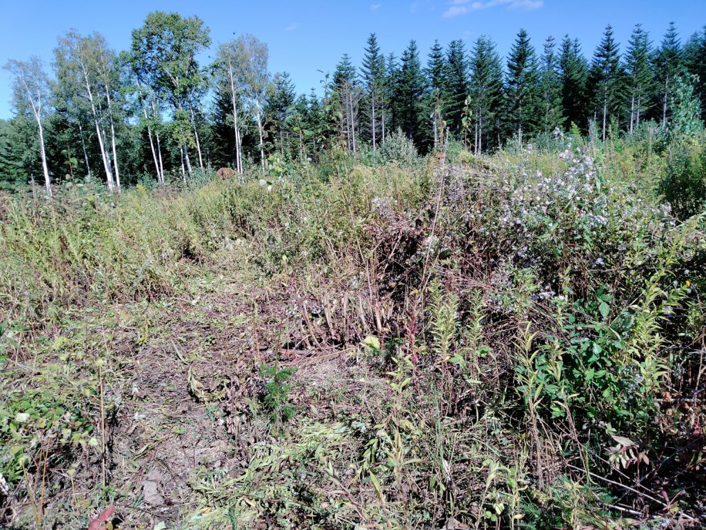 右側:草刈りをせず、草の上に枝条をぶん投げてます。