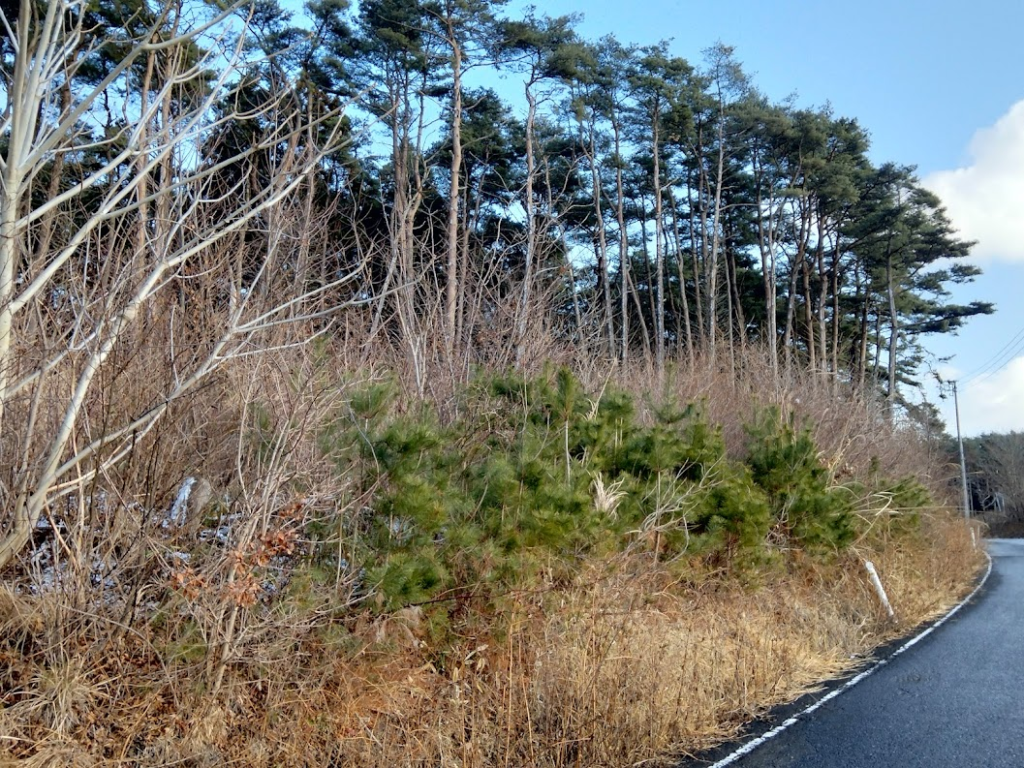 この左側の画像が自分のイメージです。勝手に生えた赤松。