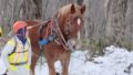 ・国立公園種差海岸の景観を維持するために、重機ではなく馬搬で作業を行う。