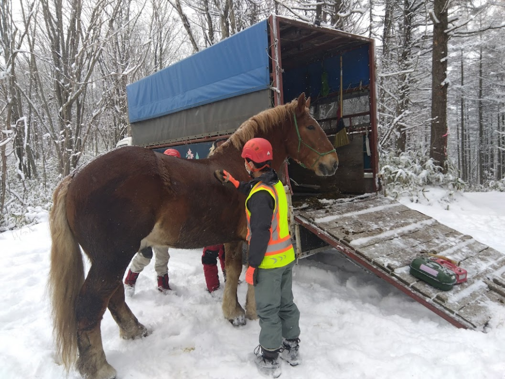 林業事業体としては珍しく、馬搬を行っている、西埜馬搬さんへ勉強させてもらいに行きました。