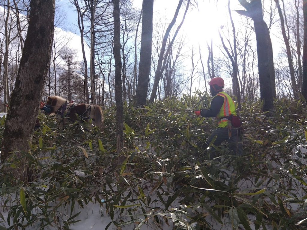 馬搬は、現在の重機使用の施業とは異なり、効率はよくありません。