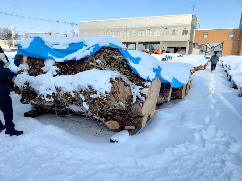 市自体は27日に行われるのですが、対象の木は既に集まっているため、北森カレッジとして見学をさせて貰いにいきました。