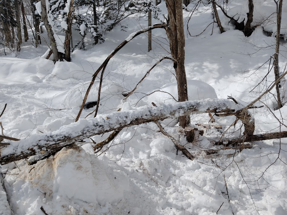 これ、右側は沢地のため夏には近づけなかったのですが、冬なら木の根元まで行けます。