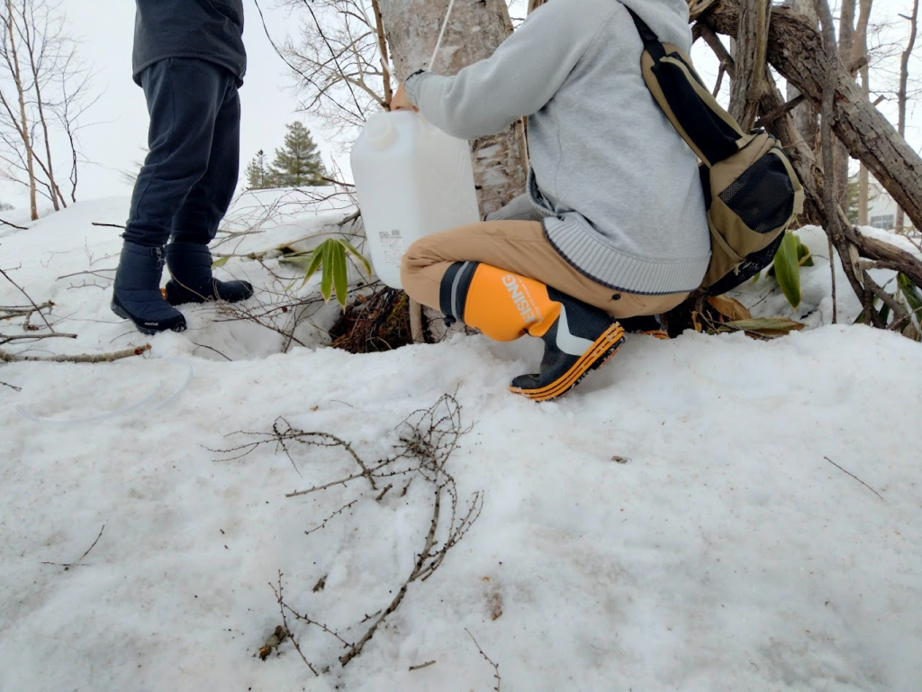 というわけで、山菜部では恒例となっている模様の樹液採集に行ってきました。