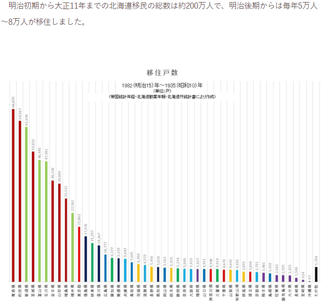 明治の初期は特に、明治維新で負けた地域の士族の移住が多かった。