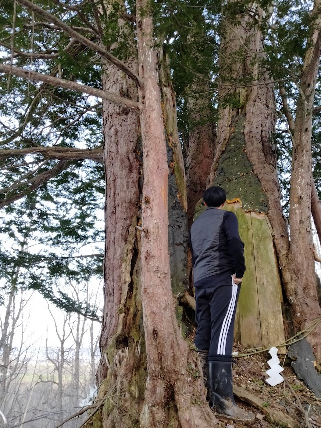 士別市にあるイチイ(オンコ)の樹です。 祖人の松 としてまつられています。