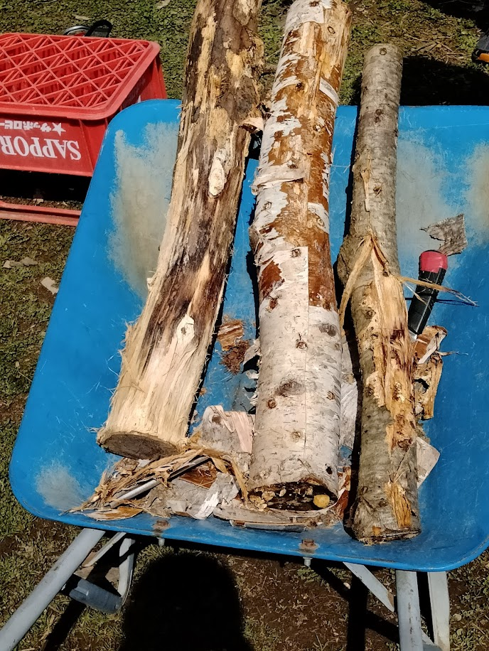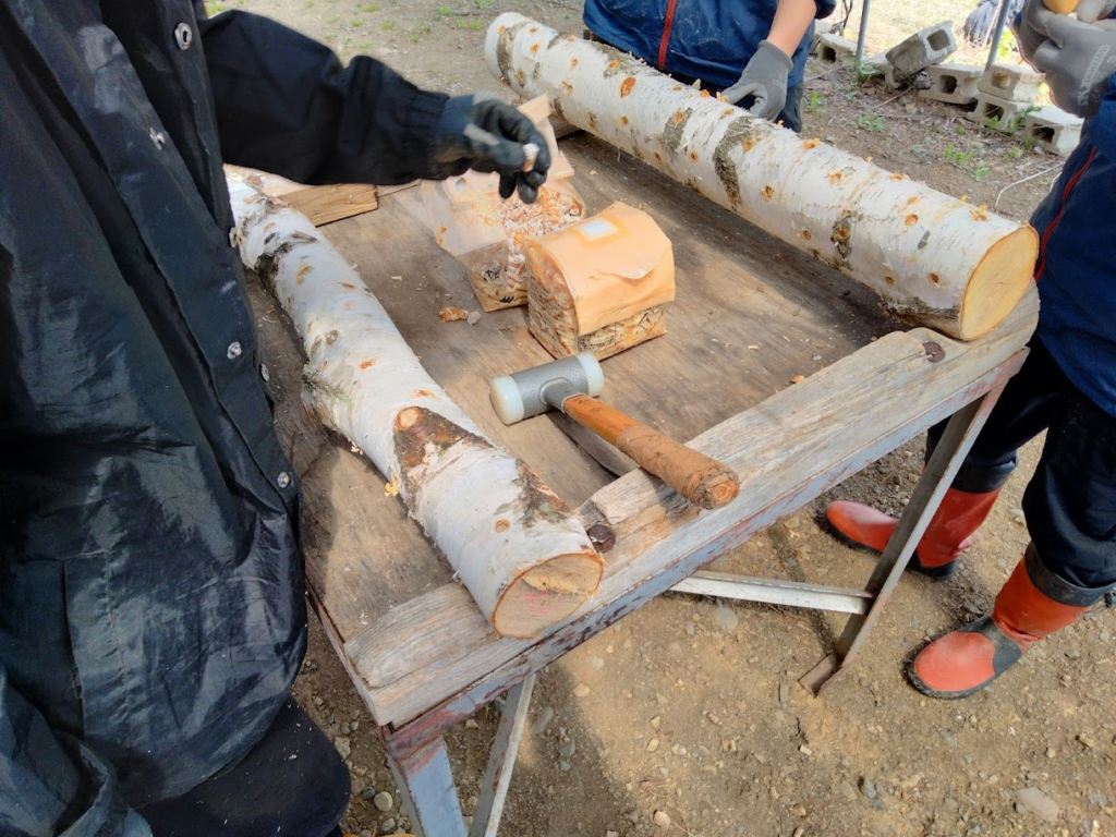 ちなみに、今回のミズナラとシラカバは学院で切った丸太を持ってきています。