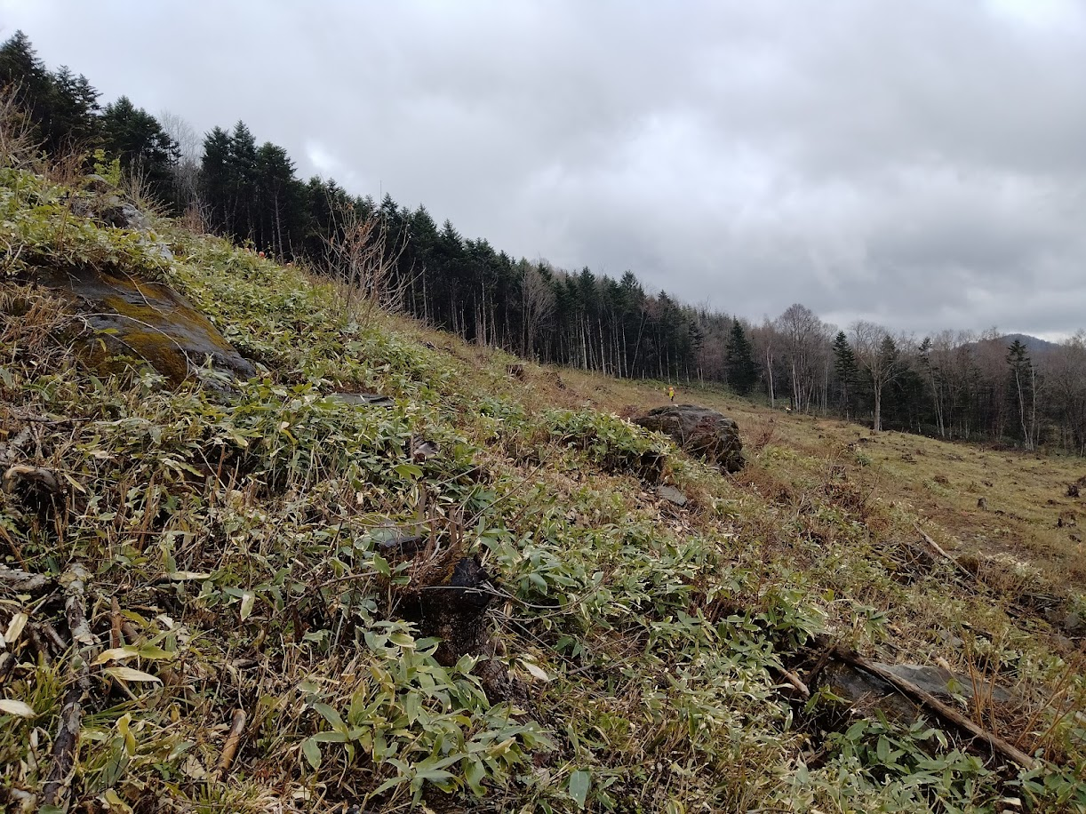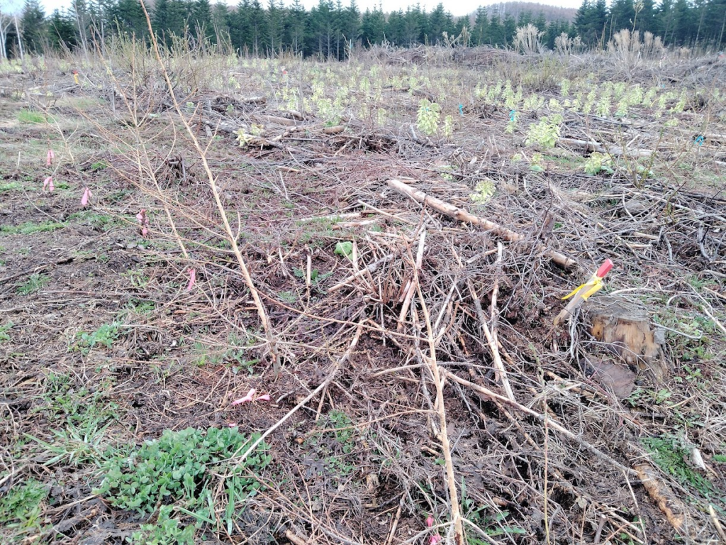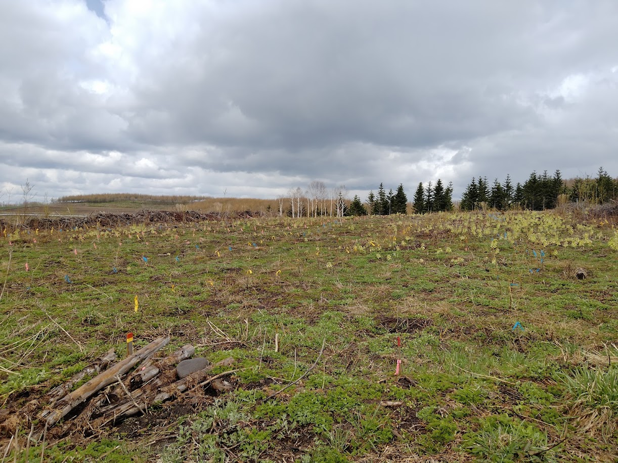 見つけた樹も、半分ぐらいネズミや理由不明で枯れてました。ウサギに先端を切られてるのも多い。