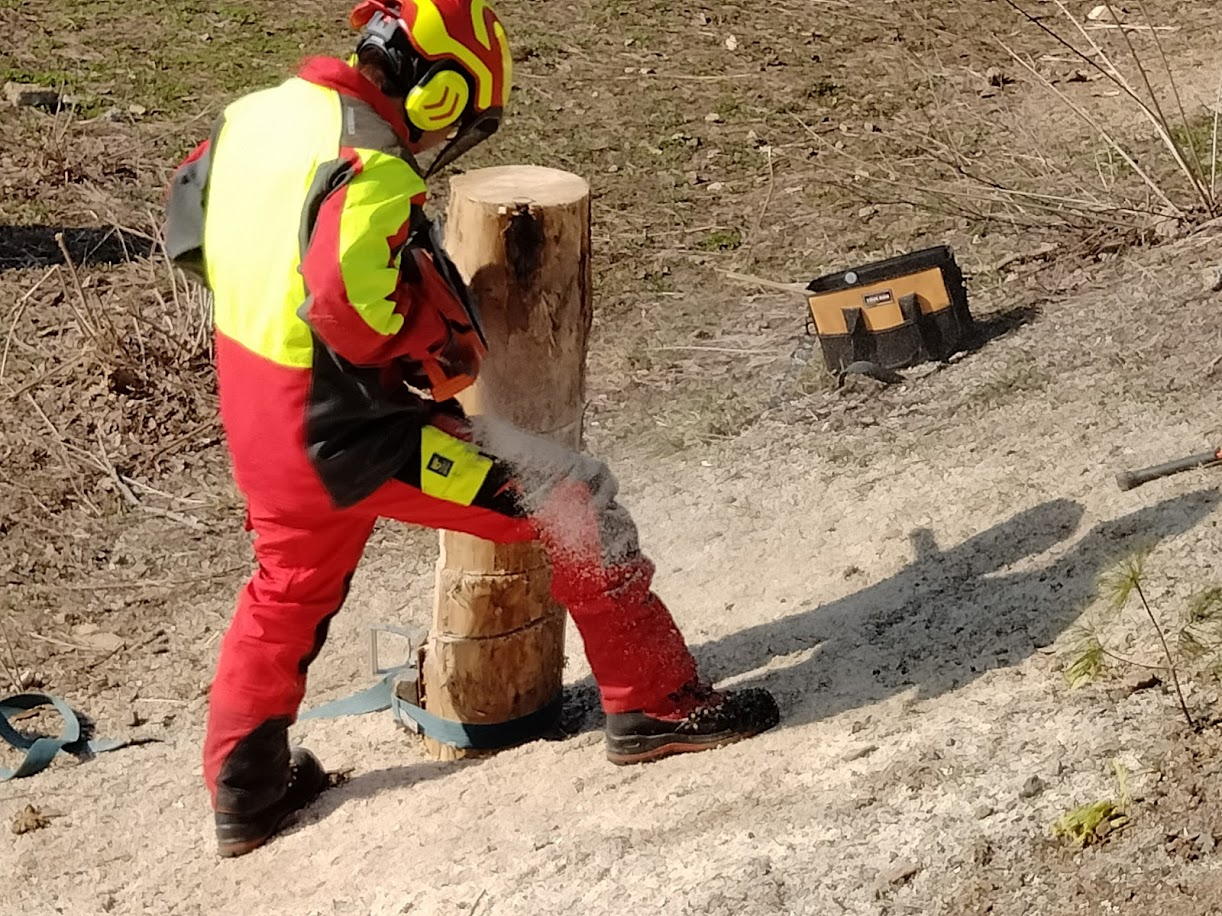 伐木造材実習 チェンソー