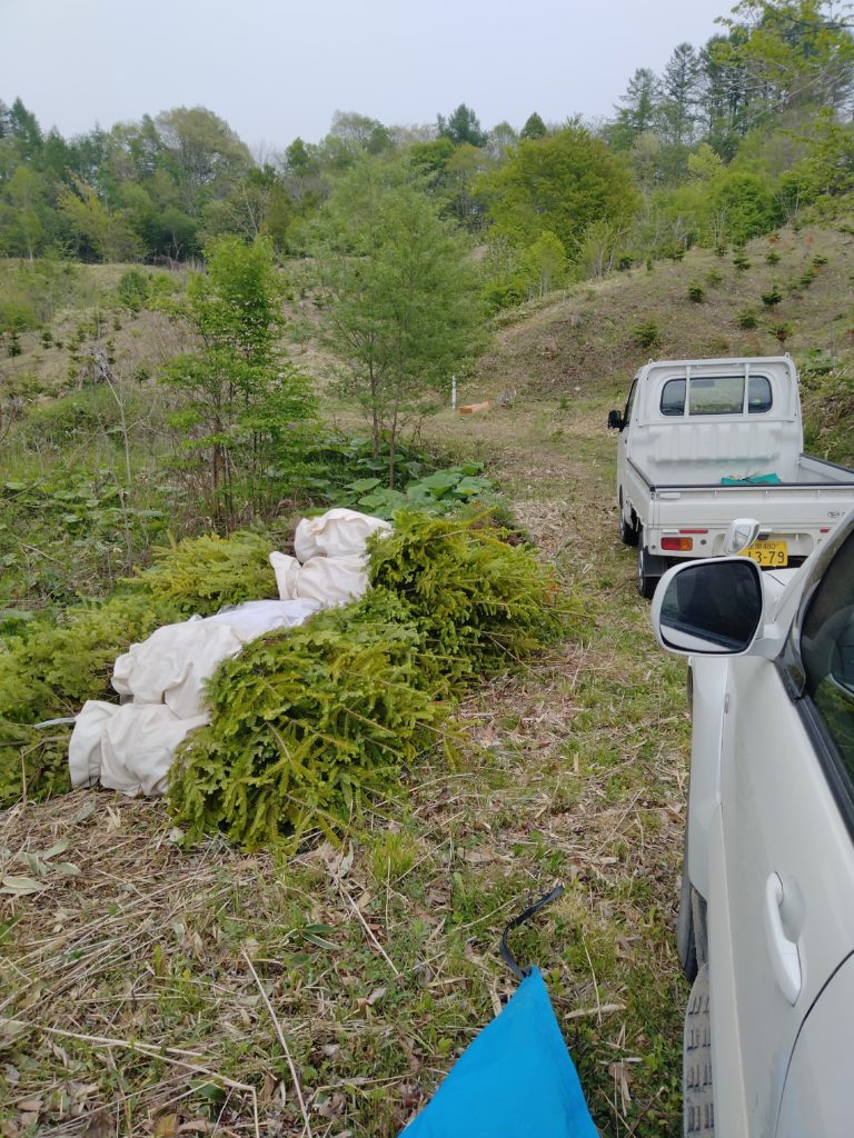 前日に、植樹祭用のトドマツの苗木が寄贈されたのを、森林組合として掘り取りをしたので、それが植えられるところを見てみたいと参加させてもらいました。