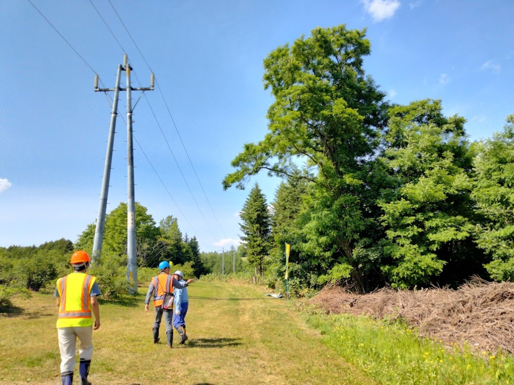 樹木が送電線に接近、接触すると、電気事故が発生し送電線が損傷するばかりではなく、林野火災の発生の懸念まである。とのことで、監視、整備には気を使っているとのことです。