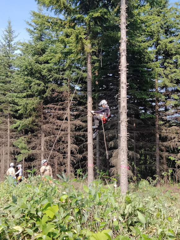 ホクデンの送電線の伐採業務の授業を行いました。