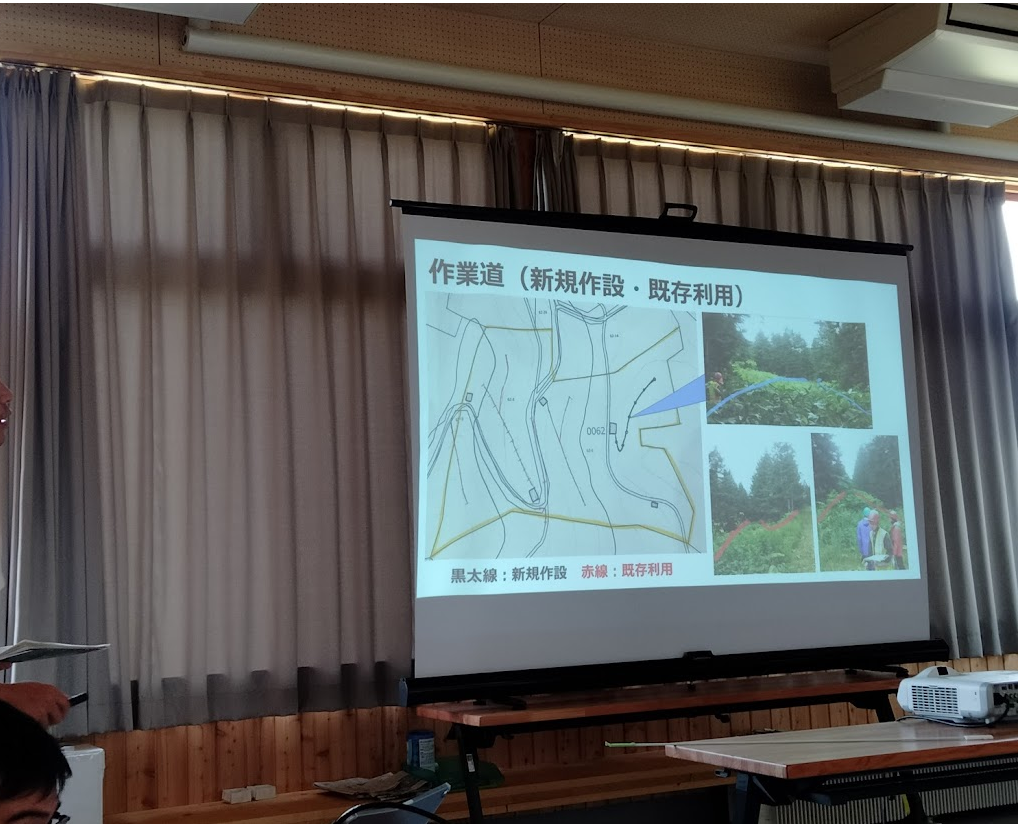どこに道を通すか。どこまで材の搬出を行うか。どのようなシステムで行うとどれくらいの利益が出る予定か。工程は何日ぐらい掛かるか。