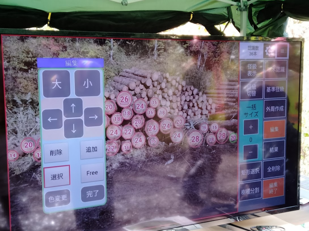 トラックに積む時、というのは配送先が決まっているわけで、トラックの荷台でこのアプリを使用した結果を山側の出荷量とするのでいいのでは?荷台だとレンズの外側というのもそんなないし。