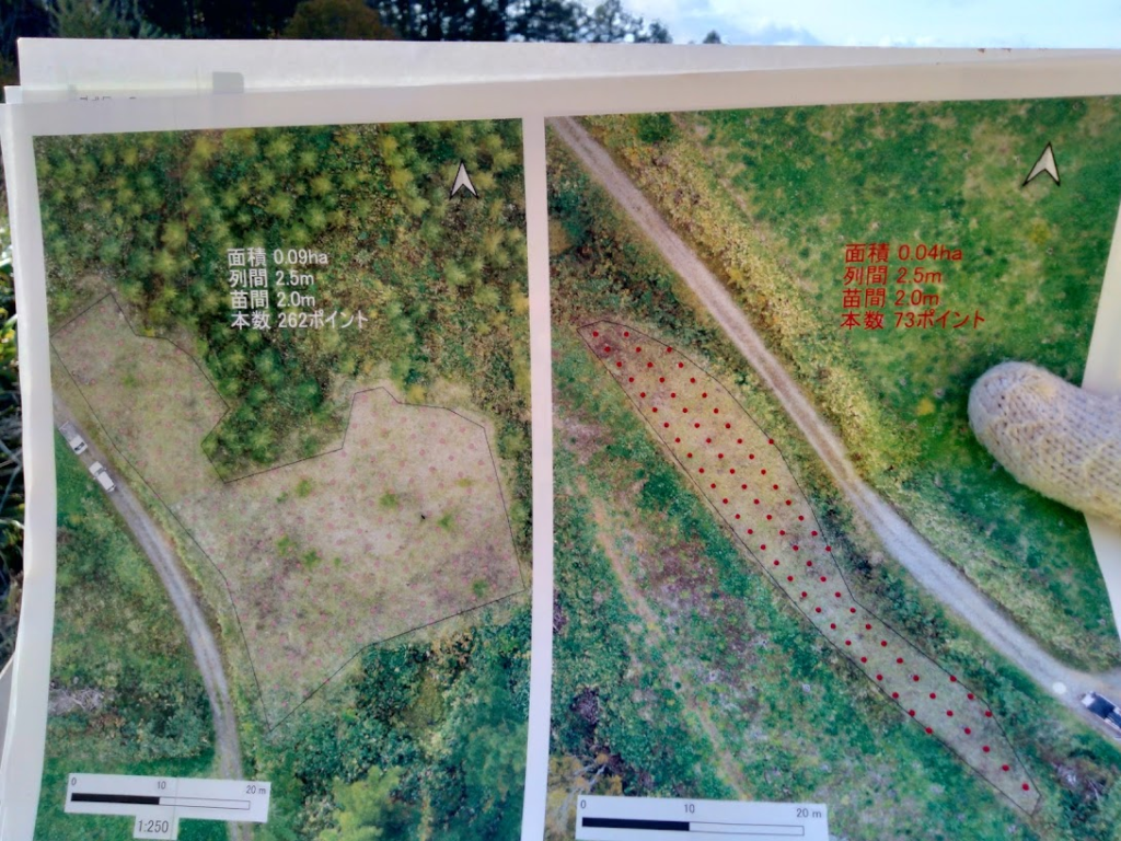 植えた場所の位置情報があれば、自動草刈り機で苗を避けて草刈りできるはず。というのが大事かなぁ。