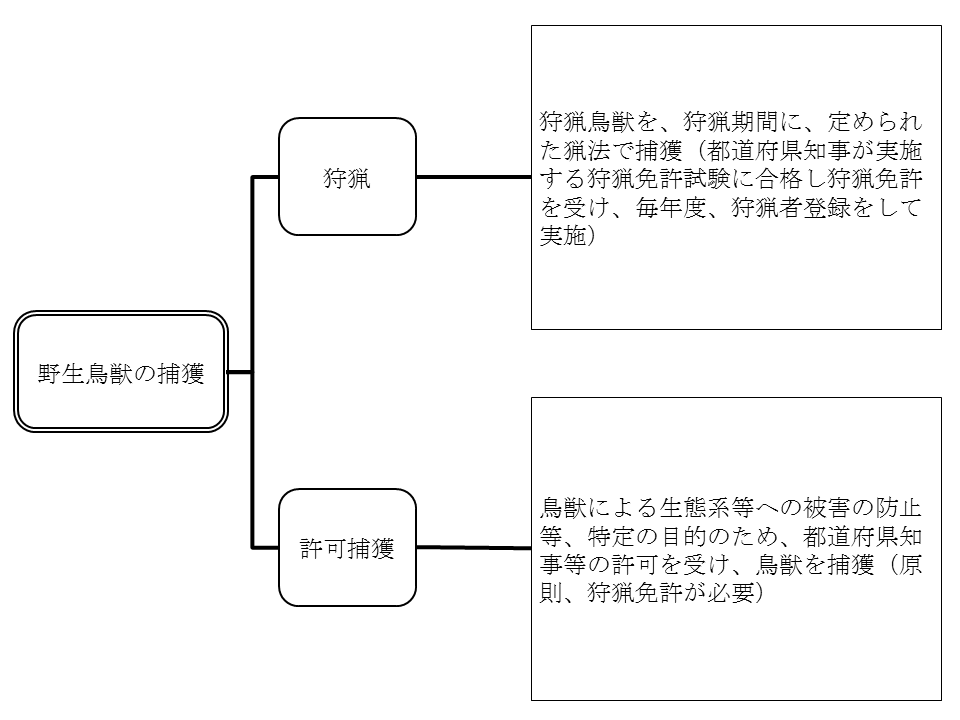 ・許可捕獲:有害鳥獣捕獲など、農業被害を抑えるため。