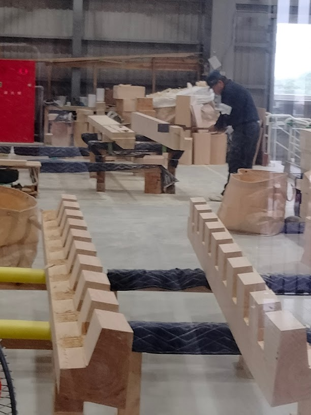 職人が手作りでカットして組んでいるのを見ることができました。完成してしまうと朱塗りされてしまうでしょうから。