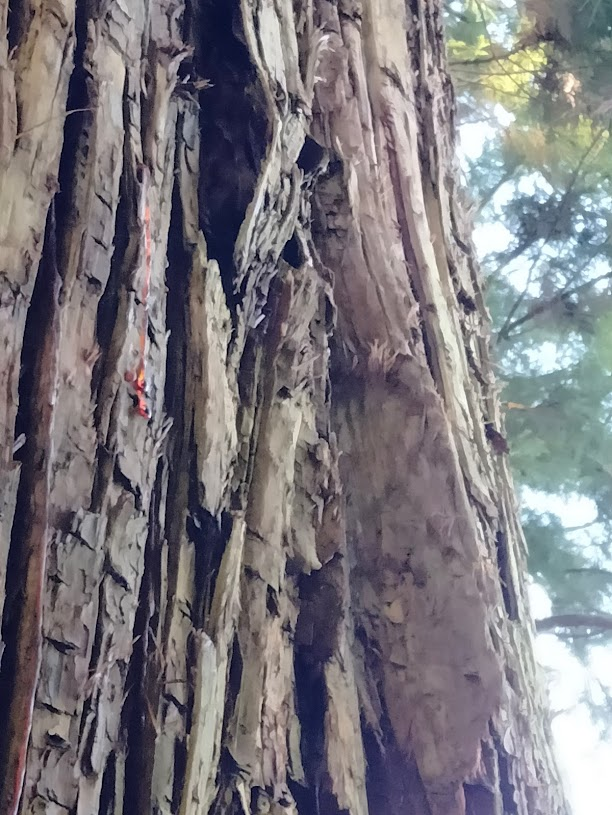 中中:樹液が流れているのを見つけました。杉の樹液って綺麗ですね。また樹皮もでかーい。