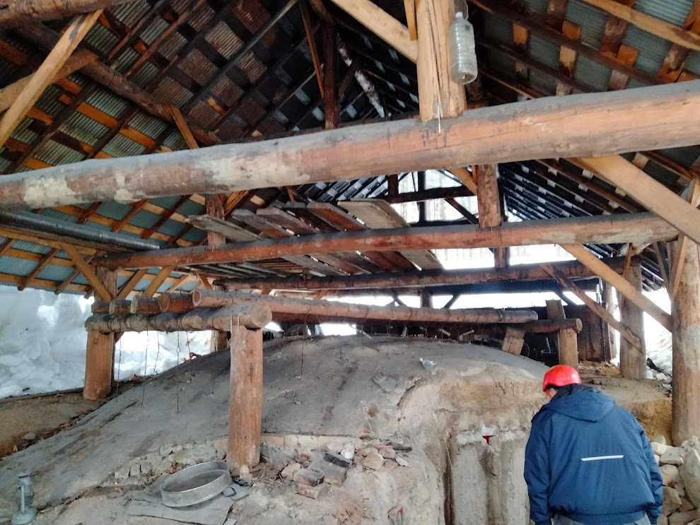 旭川近郊には炭作りを行っている先達がおらず、どこの土が壁や屋根にいい。などの情報がないためです。炭窯は雪が少ない地域にはまだ残っているのですが、豪雪地は他に無いそうです。