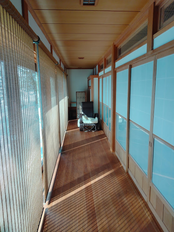 窓枠が木枠でペアガラスの内側にガス注入などで断熱効果を高めながら光を通して室内温度を上げる。というのが体感できる建物だと思いました。
