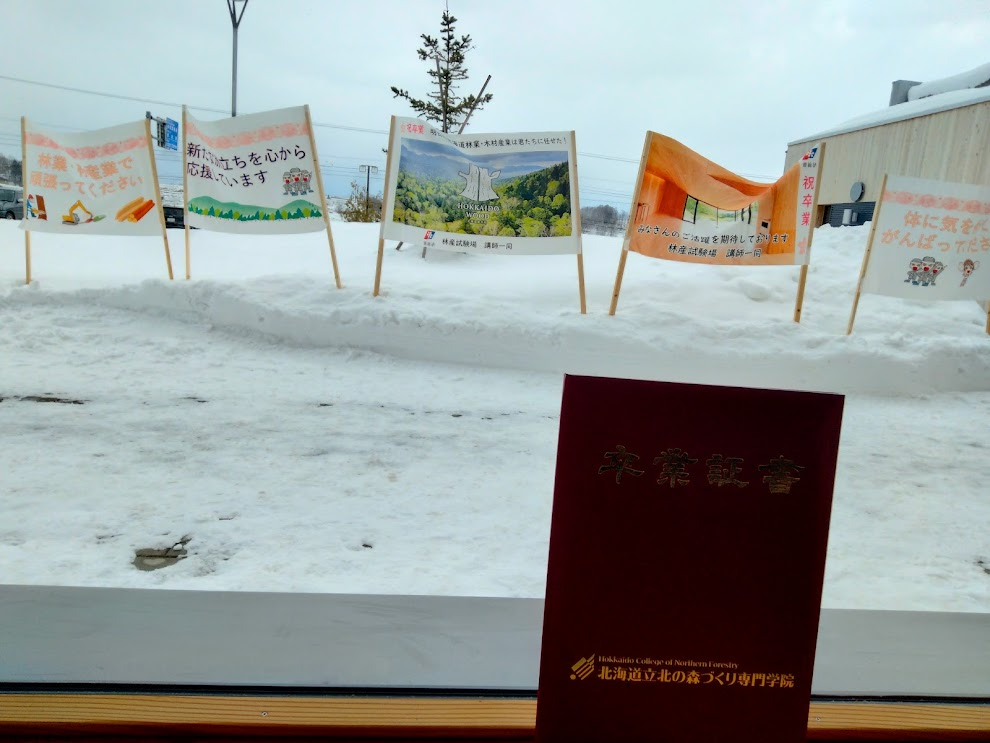 学校 北森カレッジ林業大学校 2024/03/11 卒業式 学校 X Facebook はてブ Pocket LINE コピー 2024.03.14 目次 卒業式昼食 卒業式 卒業式しました。1時間ほどですが、親御さんも結構いらしていました。お隣の林産試験場の方も、祝ってくれました。 昼食 学生で声を掛け合い、ケータリングで懇親会。2年間の話題に花を咲かせました。 この後に、居酒屋も行きましたけどね。そんな感じで、学院での2年間が終わりました。まだ、顔出しますけどね。