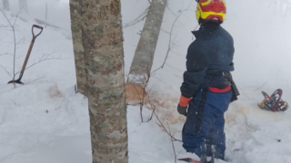 選択で実技工場コースを取っている人以外は最後の伐木の授業でした。私は、経営者育成コースなので最後の伐木として、試験を受けてきました。 伐木造材 冬の伐倒 林道まで飛び出したアカエゾマツ 左:公道から林道へは、カンジキを履いて、橇を引いて歩き...